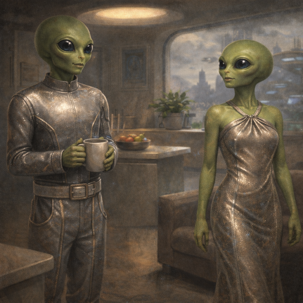 Eben are short in stature, standing only around 3 to 4 feet tall, with compact yet wiry builds that belie their constant energy. They possess large, rounded heads paired with two enormous and expressive eyes, which range in color from blues, yellows, and greens, and in rare cases appear almost entirely black. Their skin comes in various shades of green, often subtly mottled or muted rather than vibrant. Despite their small size, Eben are physically capable and enduring, built for long periods of endurance rather than raw strength.