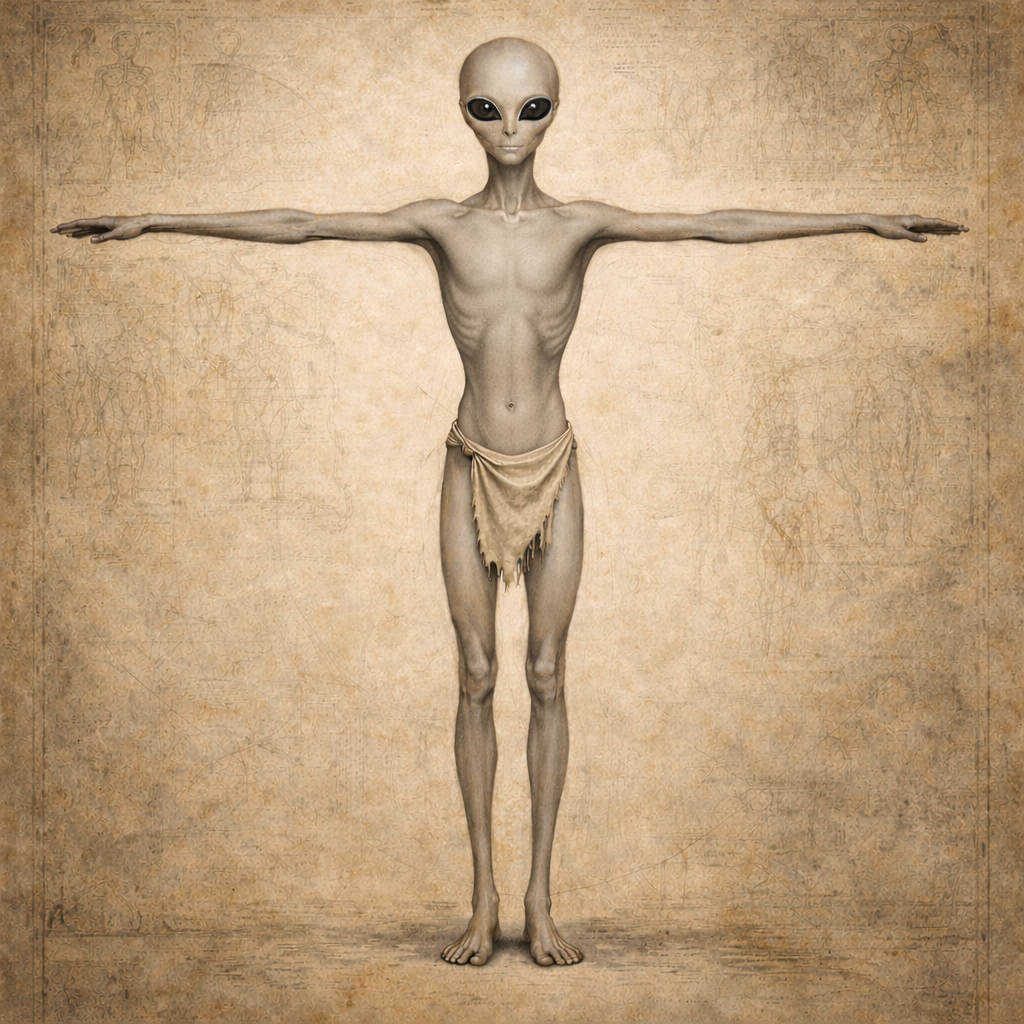 Greys have slim and wiry humanoid builds, typically standing between 6 and 8 feet tall, with elongated torsos, arms, and legs that give them a distinctly fragile yet refined silhouette. Their heads are large and rounded, dominated by two massive black eyes. Their skin is sleek and grey in color, smooth to the touch, as Greys do not grow any sort of body hair. Facial features beyond the eyes are minimal and subtle, contributing to their iconic appearance.